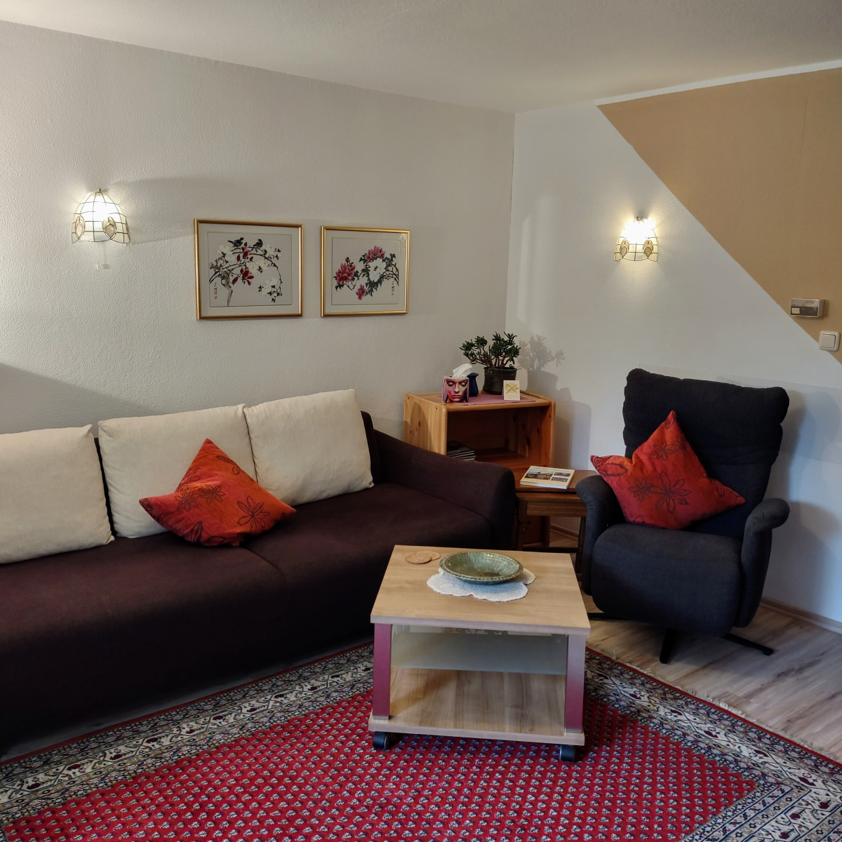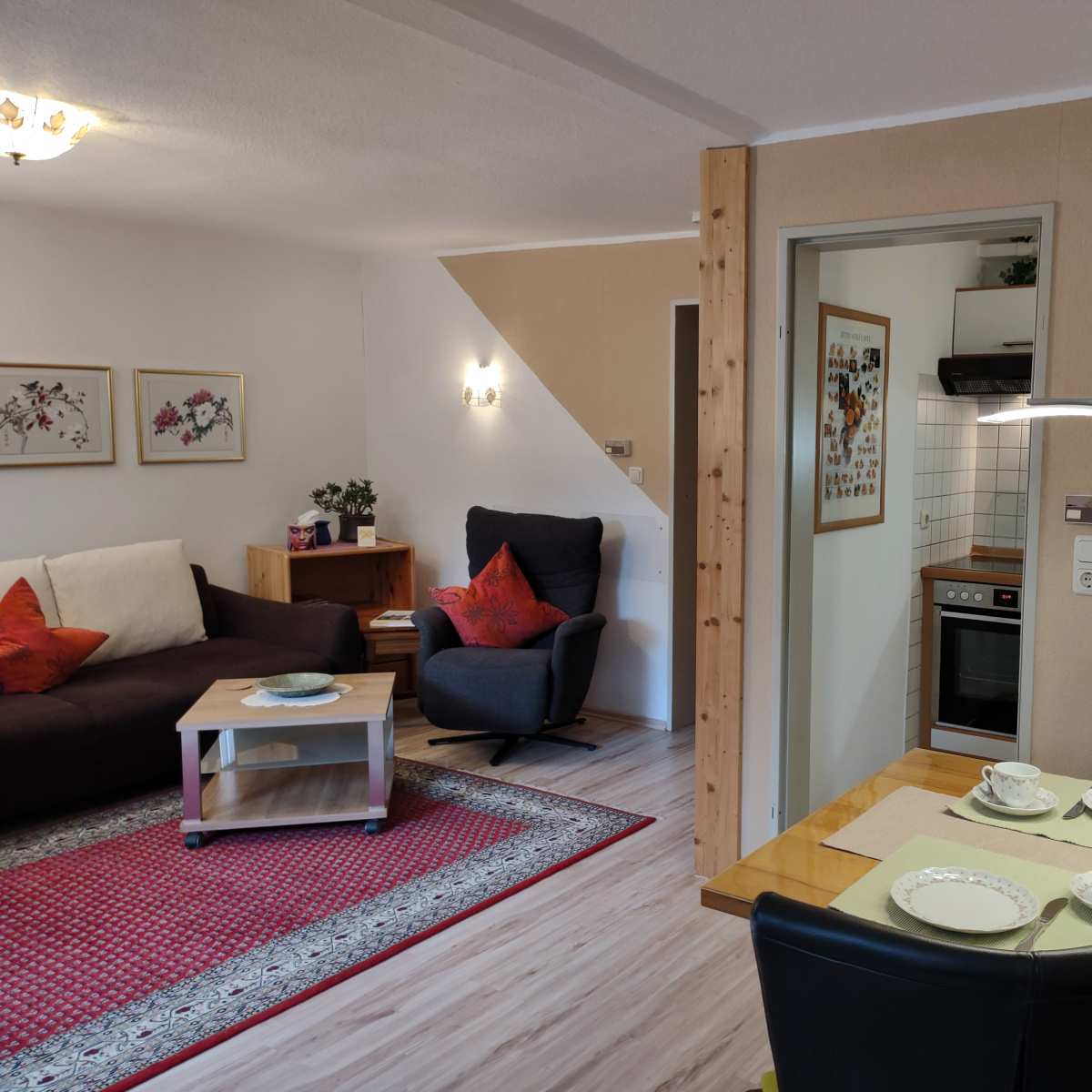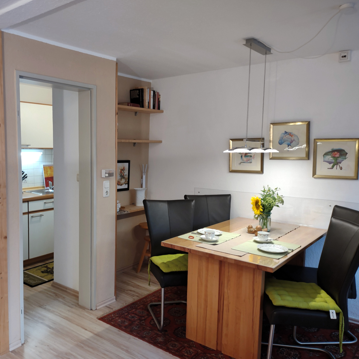 Unsere Ferienwohnung Nikita besteht aus einem Schlafzimmer, einem kombinierten Ess- und Wohnzimmer, einer kleinen modernen Küche sowie einem Bad/WC mit Dusche. Die Nichtraucherwohnung ist mit ca. 55m² für bis zu zwei Personen geeignet